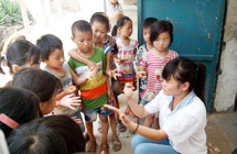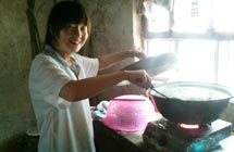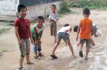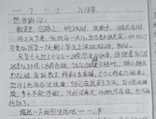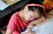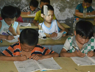 鄉(xiāng)村小學(xué),沒(méi)有體育器材,沒(méi)有娛樂(lè)設(shè)施,孩子們只能選擇自?shī)首詷?lè)。有次,志愿者們看到孩子們用一根細(xì)樹(shù)棍,一塊石柱,就玩起了翹翹板。每到夜晚,志愿者的住處就擠滿了學(xué)生,大家或做游戲,或一起用筆記本電腦看哆啦A夢(mèng),從孩子們看動(dòng)畫(huà)片的那份專(zhuān)注,志愿者們看得出來(lái),孩子們很少能看到這種動(dòng)畫(huà)片。天陰教室昏暗,加上學(xué)校經(jīng)常斷電,孩子們不得不在陰暗的環(huán)境中上課。老師拿來(lái)自己的小臺(tái)燈給在角落的孩子照明,即使在這樣的情況下,孩子們依然學(xué)習(xí)很認(rèn)真。申倩老師應(yīng)該是最受歡迎的啦,她多次收到孩子們的“示愛(ài)書(shū)信”,那些小紙條上往往寫(xiě)著“音樂(lè)老師你唱的歌很好聽(tīng),我喜歡你”