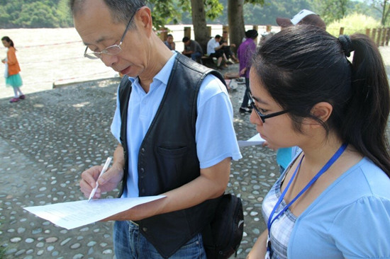 “綠色新生態(tài)”團(tuán)隊(duì)的成員來自四川農(nóng)業(yè)大學(xué)資源與環(huán)境學(xué)院,此次實(shí)踐的主題是“宣環(huán)保足探石棉縣,揚(yáng)生態(tài)共筑中國夢”。隊(duì)員們前往災(zāi)后重建縣城——雅安市石棉縣開始為期8天的征程:走訪石棉縣下屬各鄉(xiāng)鎮(zhèn),發(fā)放調(diào)查問卷,采訪相關(guān)政府部門,參觀革命紀(jì)念館等。雖然實(shí)踐進(jìn)展的不是一帆風(fēng)順,但隊(duì)員們?nèi)詧?jiān)持不懈,不斷反思自我。“今天的實(shí)踐帶給我最多的就是震撼和感動,在分發(fā)便利貼時遇到了很多困難,但克服這些困難之后會有一種深深的滿足感。飽含濃郁的紅色文化氛圍的安順是我們小隊(duì)宣傳‘中國夢’的絕佳之地,我們還要更加努力!标(duì)員胡瀚文在中國工農(nóng)紅軍強(qiáng)渡大渡河紀(jì)念館做環(huán)保宣傳時這樣告訴記者。另一位隊(duì)員郭瑀說:“能深入鄉(xiāng)村進(jìn)行面對面的了解對我來說是一個全新的經(jīng)歷,很新鮮也很有意義。雖然實(shí)踐的時候很累,但還是有一股力量支撐著自己堅(jiān)持下去,我們的成員們都很棒,相信我們能取得好的成果!
