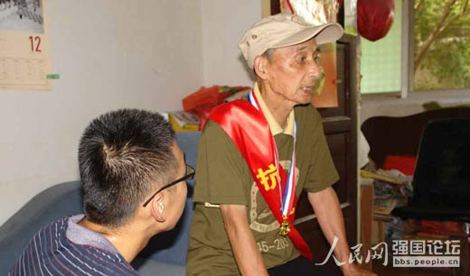2015年適逢中國(guó)人民抗日戰(zhàn)爭(zhēng)暨世界反法西斯戰(zhàn)爭(zhēng)勝利70周年,人民網(wǎng)作為獨(dú)家媒體支持推出“全國(guó)大學(xué)生紀(jì)念抗戰(zhàn)勝利70周年尋訪活動(dòng)”,引導(dǎo)青年大學(xué)生主動(dòng)、自覺(jué)地在社會(huì)實(shí)踐中學(xué)習(xí)“歷史課”,緬懷抗戰(zhàn)先烈,傳承革命精神。在尋訪活動(dòng)中,不少團(tuán)隊(duì)對(duì)抗戰(zhàn)老兵進(jìn)行采訪,記錄老兵們鮮為人知的抗戰(zhàn)故事。