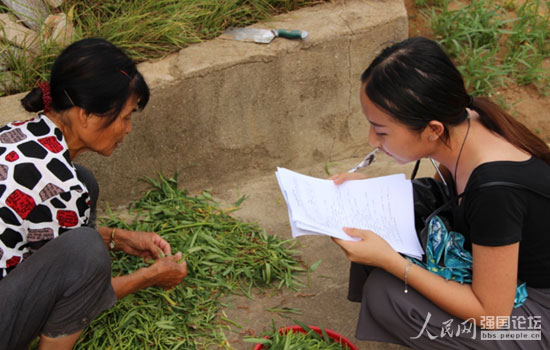 閩江學院大學生走進田間地頭做問卷調(diào)查。