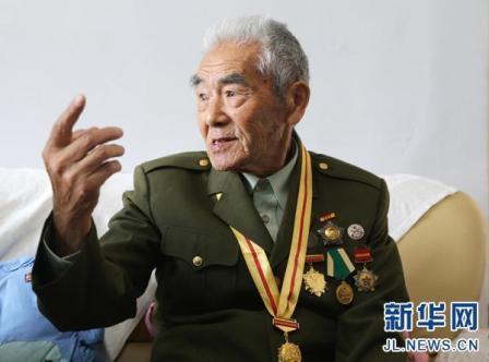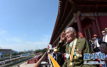 新華網(wǎng)長(zhǎng)春10月17日電(記者 田甜)9月3日,紀(jì)念中國(guó)人民抗日戰(zhàn)爭(zhēng)暨世界反法西斯戰(zhàn)爭(zhēng)勝利70周年大會(huì)在北京舉行。在那場(chǎng)盛大的閱兵式上,一位抗戰(zhàn)老兵在天安門(mén)城樓上向受閱部隊(duì)全程起立敬軍禮的一幕,戳中了很多人的淚點(diǎn),無(wú)數(shù)人為之動(dòng)容。近日,記者隨“尋找歷史記憶 緬懷抗戰(zhàn)英烈”采訪(fǎng)團(tuán)來(lái)到這位“敬禮老兵“史保東老人的家中,探訪(fǎng)昔日戰(zhàn)場(chǎng)上的這位鐵血戰(zhàn)士,回憶那段激情燃燒的抗戰(zhàn)歲月。