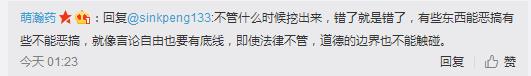 @萌瀚藥:有些東西能惡搞有些不能惡搞,就像言論自由也要有底線,即使法律不管,道德的邊界也不能觸碰。