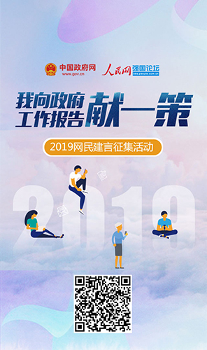 2019年全國兩會(huì)召開,你最關(guān)心什么,對(duì)政府工作有何建議和意見,新的一年又有何期待?人民網(wǎng)邀請(qǐng)“獻(xiàn)一策”網(wǎng)友“現(xiàn)身說法”。