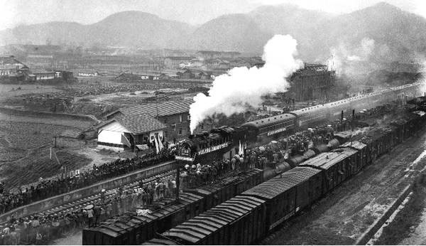 1978年,火車(chē)首次進(jìn)入湘西州州府吉首,一輛冒著滾滾白煙的蒸汽火車(chē)在城區(qū)穿行,鐵路兩旁站滿了揮舞著花束的人群。新華社記者 唐克立攝