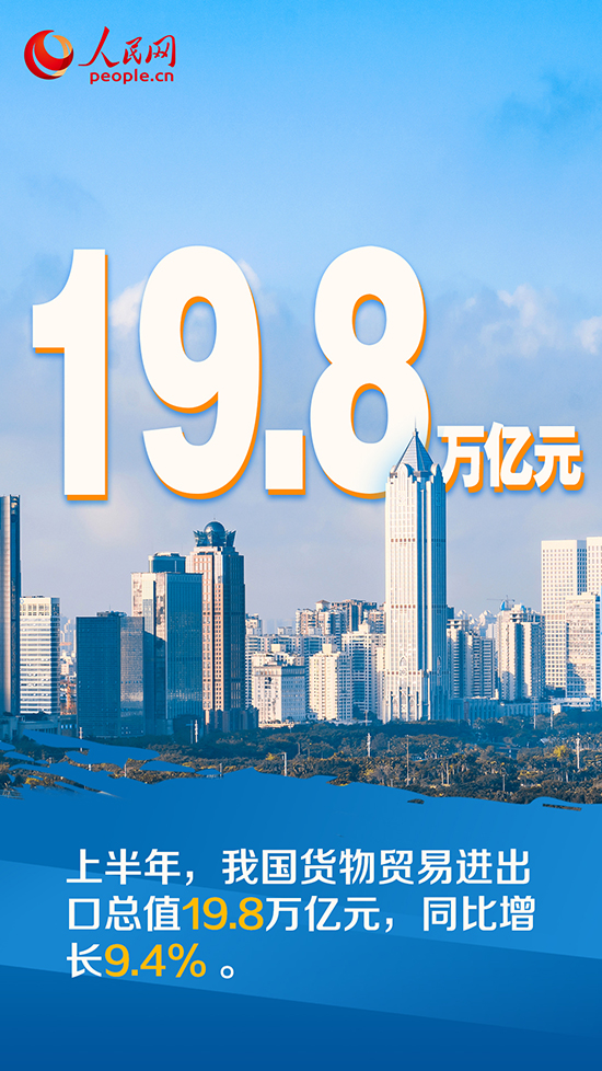 據(jù)海關(guān)統(tǒng)計(jì),今年上半年我國貨物貿(mào)易進(jìn)出口總值19.8萬億元,同比增長9.4%。其中,出口11.14萬億元,增長13.2%;進(jìn)口8.66萬億元,增長4.8%……上半年外貿(mào)進(jìn)出口“答卷”傳遞出我國經(jīng)濟(jì)持續(xù)恢復(fù)的積極信號。