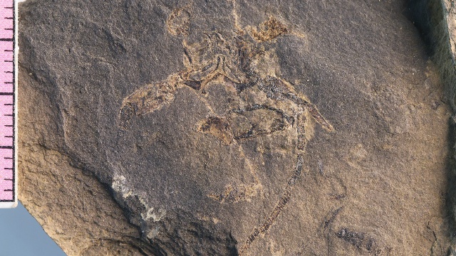 “2015年的一次普通野外踏勘工作中,我的學生代旭在一塊黑色頁巖上發(fā)現(xiàn)了一枚非常奇特的化石碎片!彼魏\娊榻B,后來經(jīng)鑒定這枚化石是在早三疊世海相地層中罕見的龍蝦化石碎片。