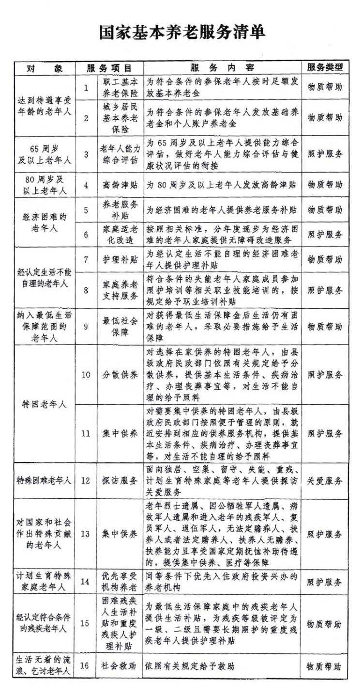 公布基本養(yǎng)老服務(wù)的國家“清單”